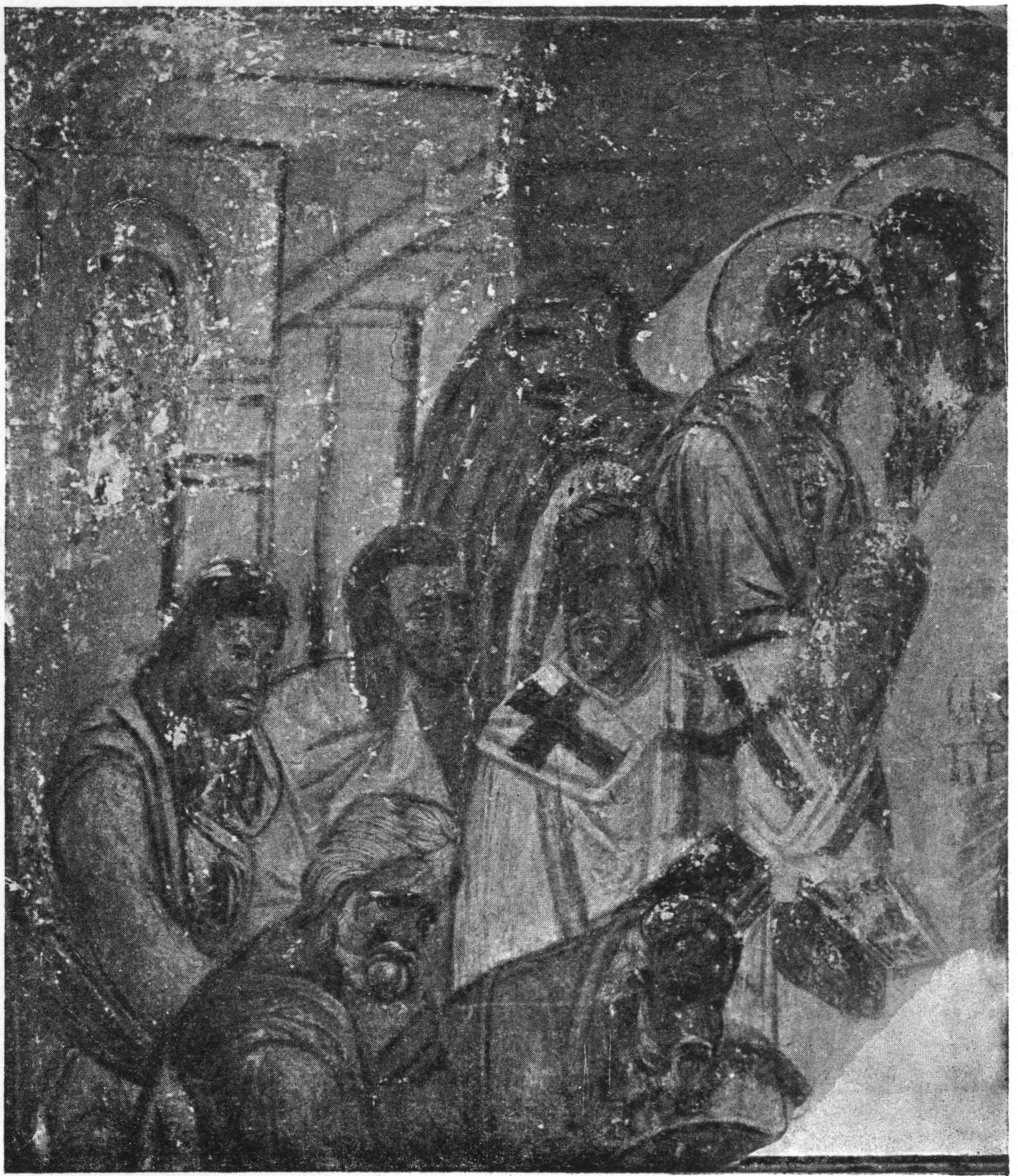 - + Успение Божией Матери. Фрагмент фрески в церкви Рождества Христова на кладбище в Новгороде. — Около 1390 г.